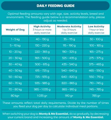 Complete, Balanced and Affordable Adult Dog Food. Monty & Me Essential is produced to the same high quality you can expect from all Montego products and has been carefully formulated to provide your pal with a balanced, satisfying and digestible food at our most affordable price point yet.